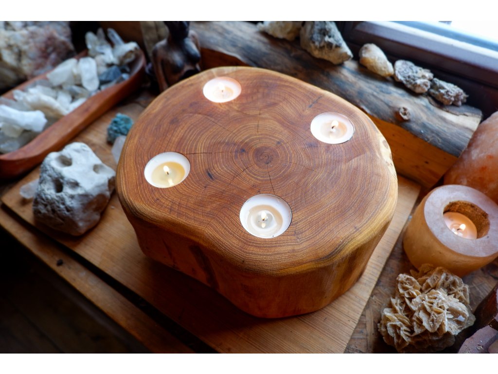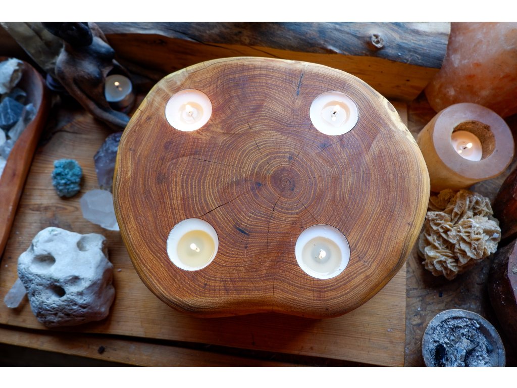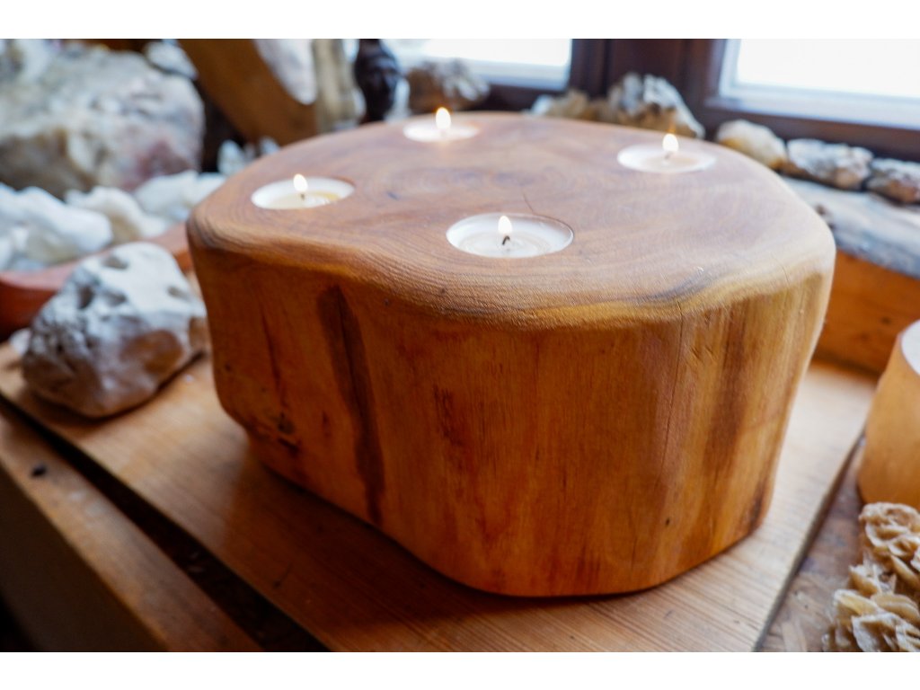 Svícen je vyroben z akátového masivu, rozměry jsou 25x21x12(výška)cm, hmotnost svícnu je 3,7kg.