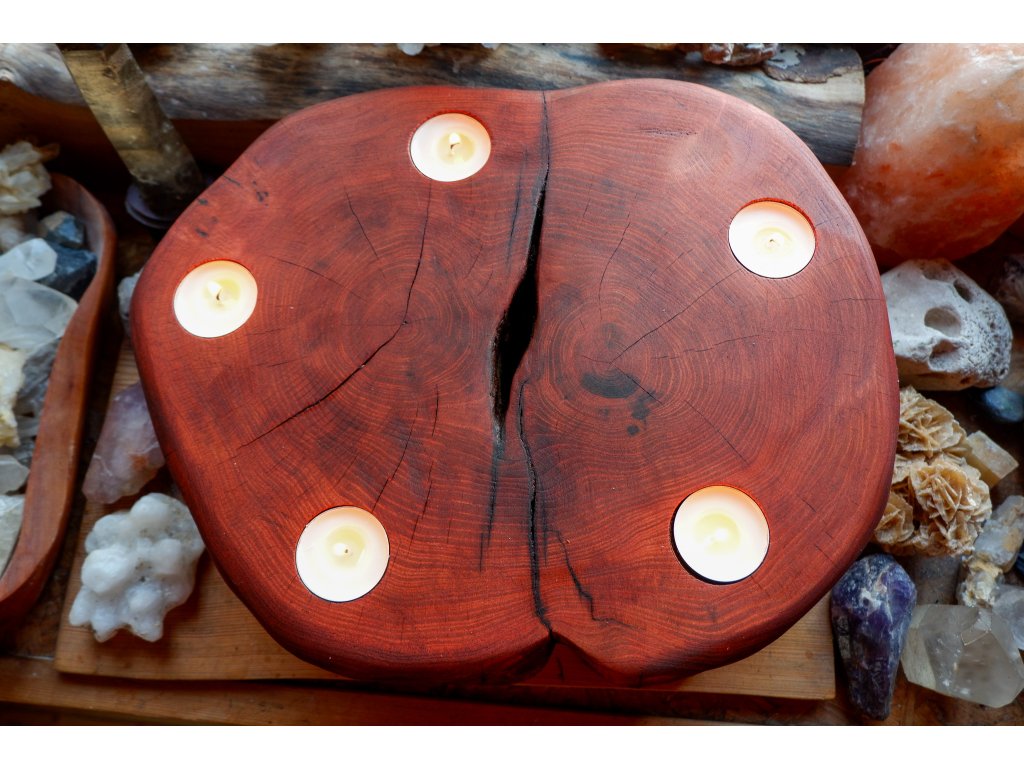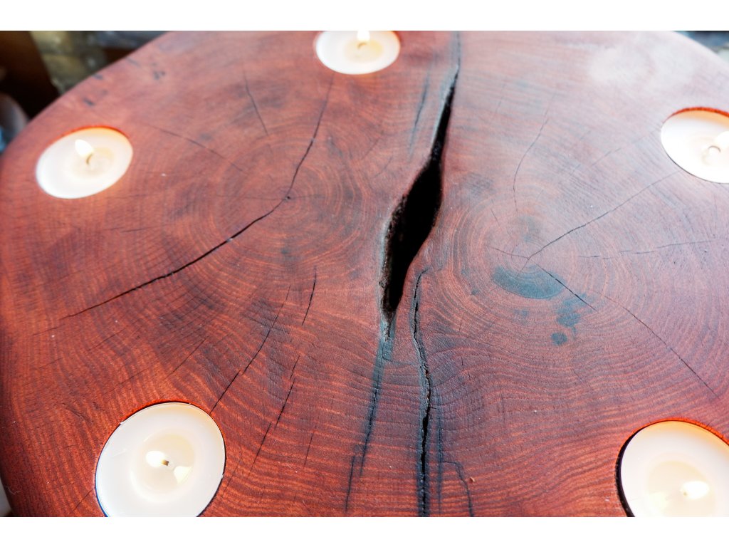 Svícen je vyroben z akátového masivu, rozměry jsou 39x29x12(výška)cm, hmotnost svícnu je 7kg.