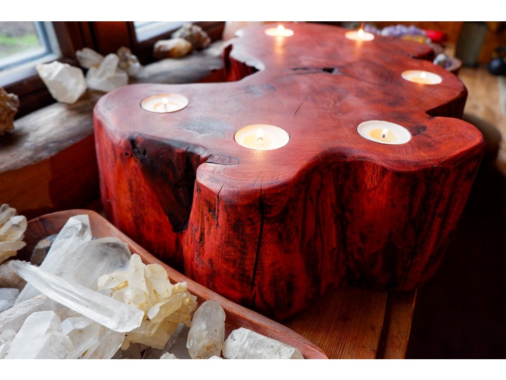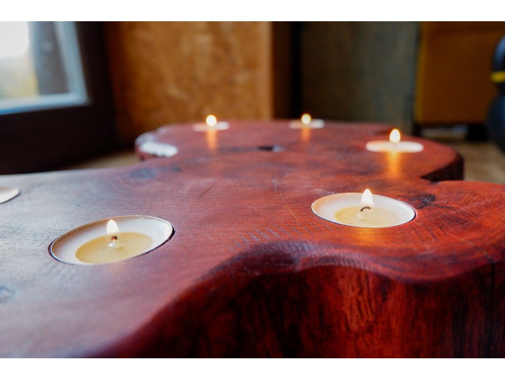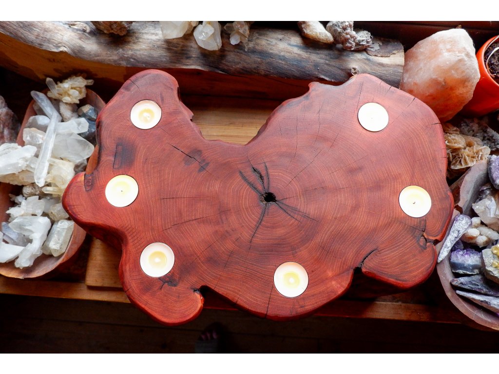 Svícen je vyroben z akátového masivu, rozměry jsou 49x20(nejužší místo)x12(výška)cm, hmotnost svícnu je 10,8kg.