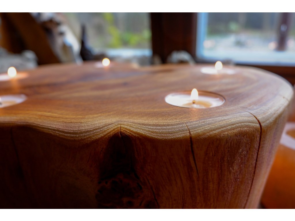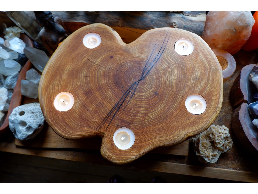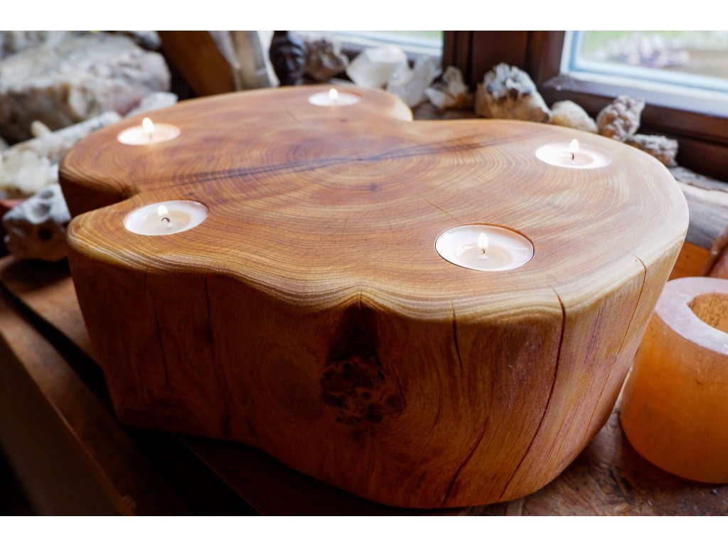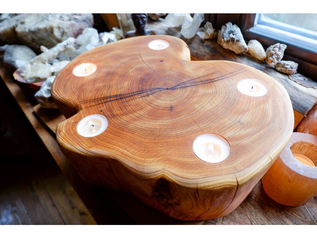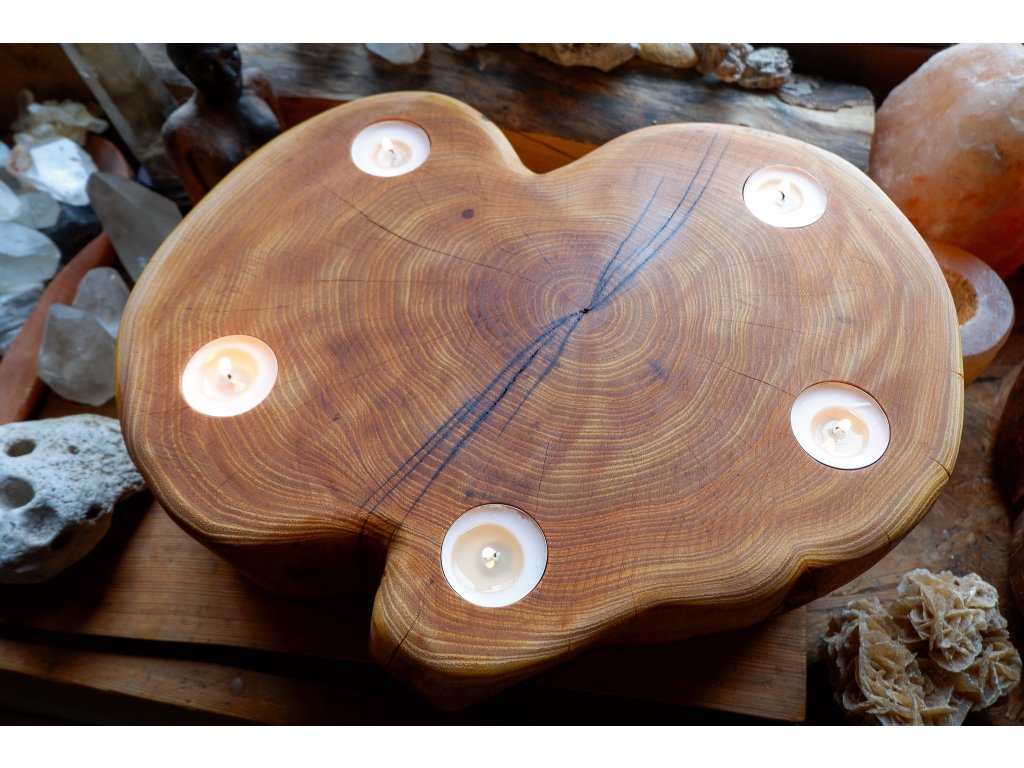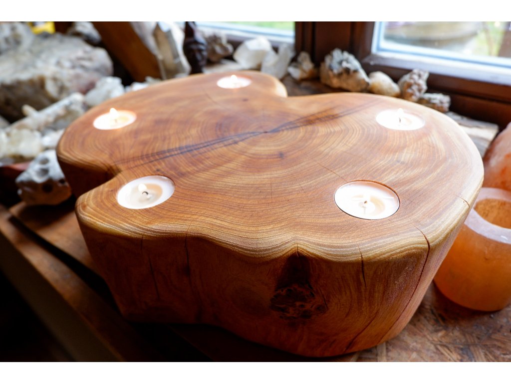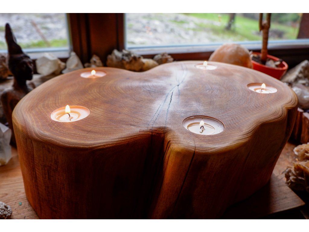 Svícen je vyroben z akátového masivu, rozměry jsou 37x25x12(výška)cm, hmotnost svícnu je 7kg.