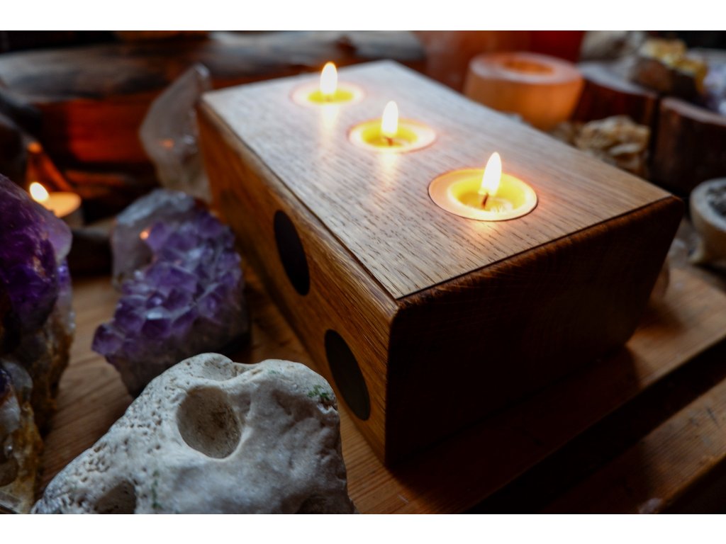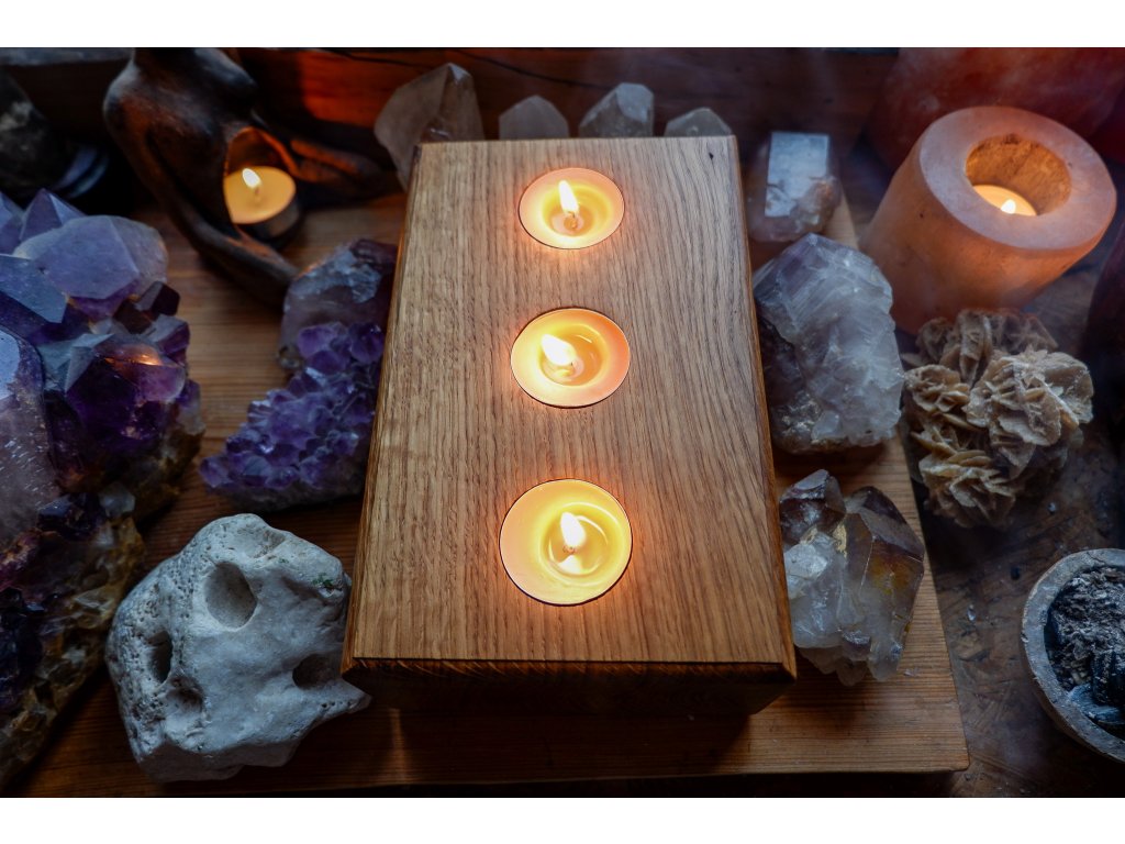 Rozměr 7 x 20,5 x 12,5 cm, pro 3 čajové svíčky.