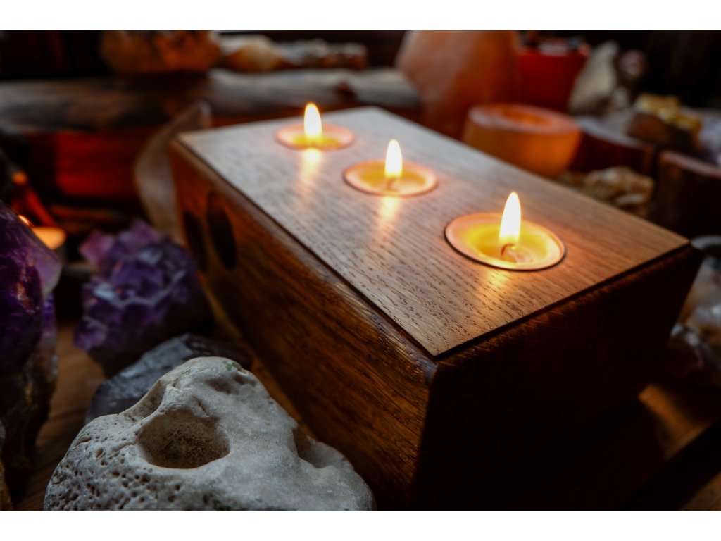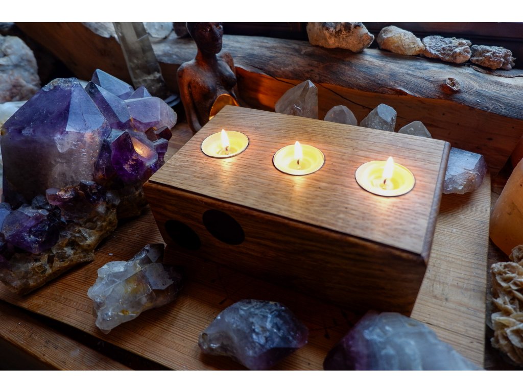 Rozměr 7 x 20,5 x 12,5 cm, pro 3 čajové svíčky.