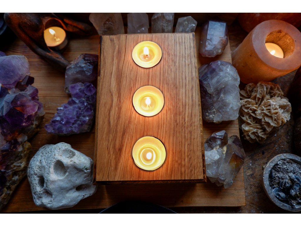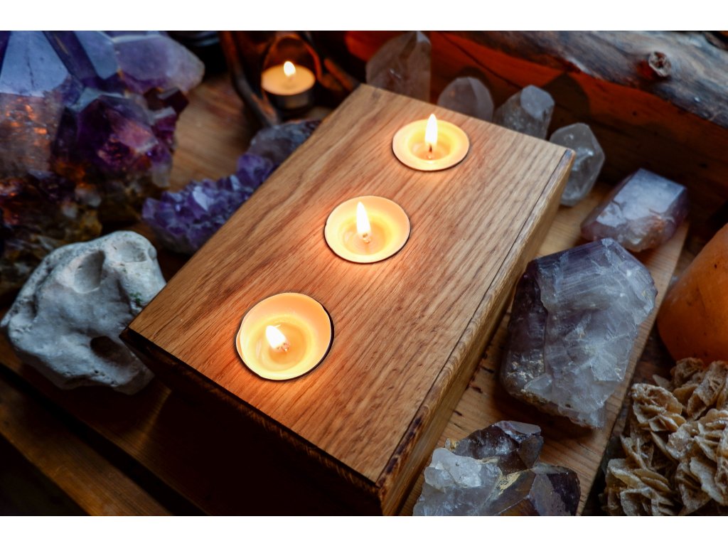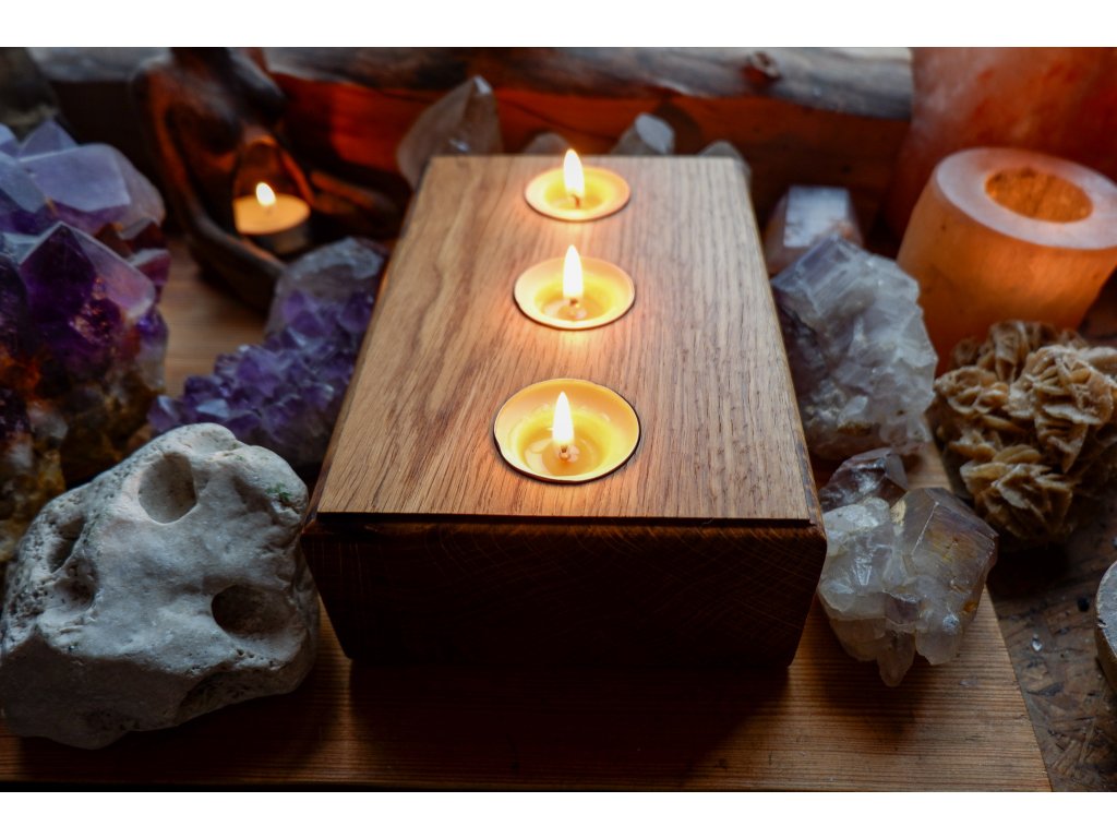 Svícen je vytvořený z dubu.