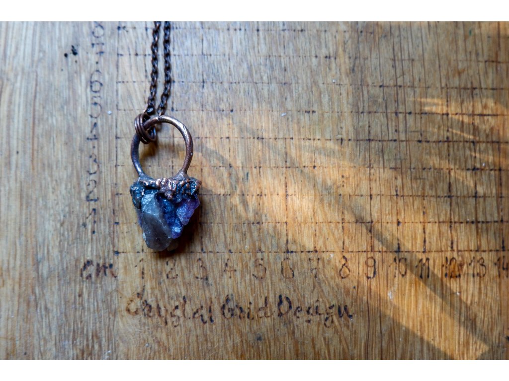 Přívěsek je vytvořený galvanizační technikou (electroforming) z mědi, citrínu a auralitu 23.