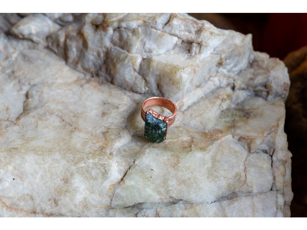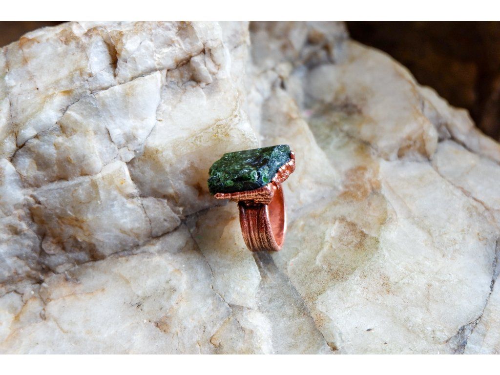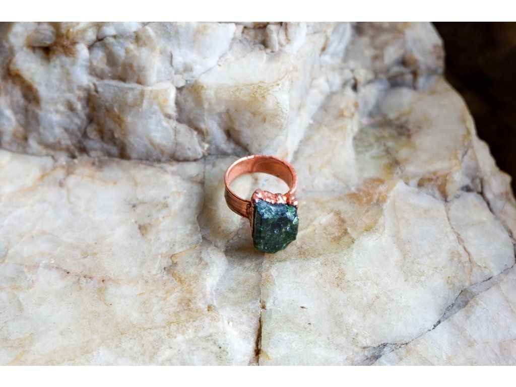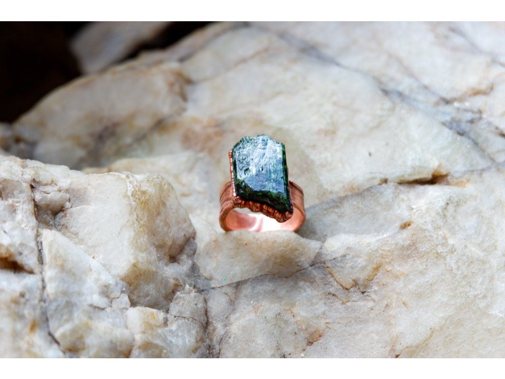 Prsten je vytvořený galvanizační technikou z mědi a tibetského křišťálu.