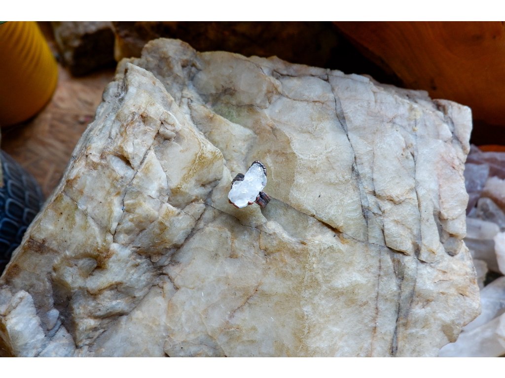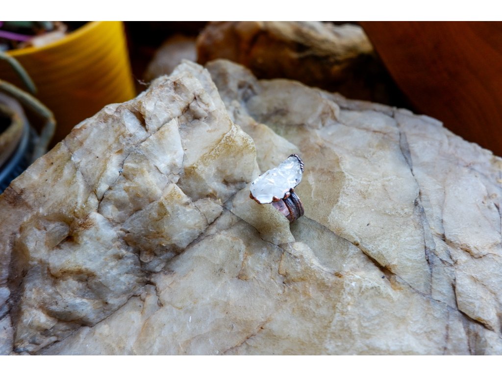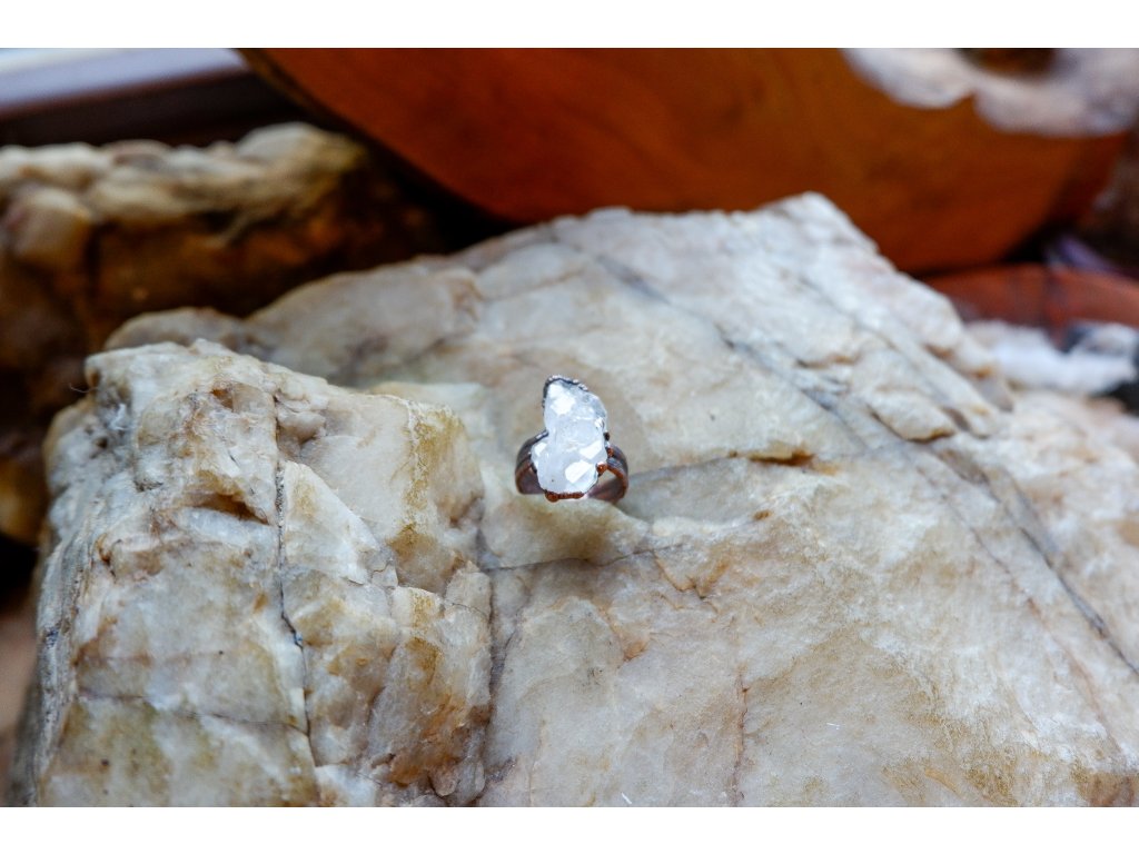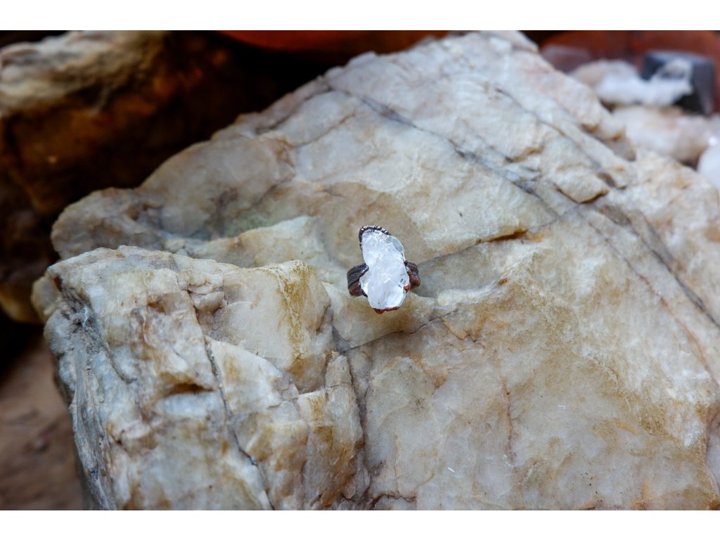 Prsten je vytvořený galvanizační technikou z mědi a křišťálu.