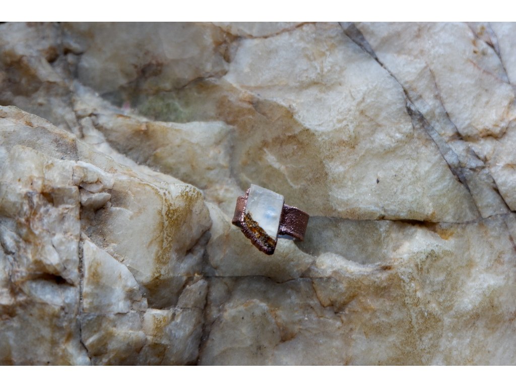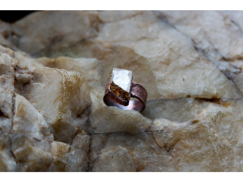 Prsten je vytvořený galvanizační technikou z mědi a optického kalcitu.