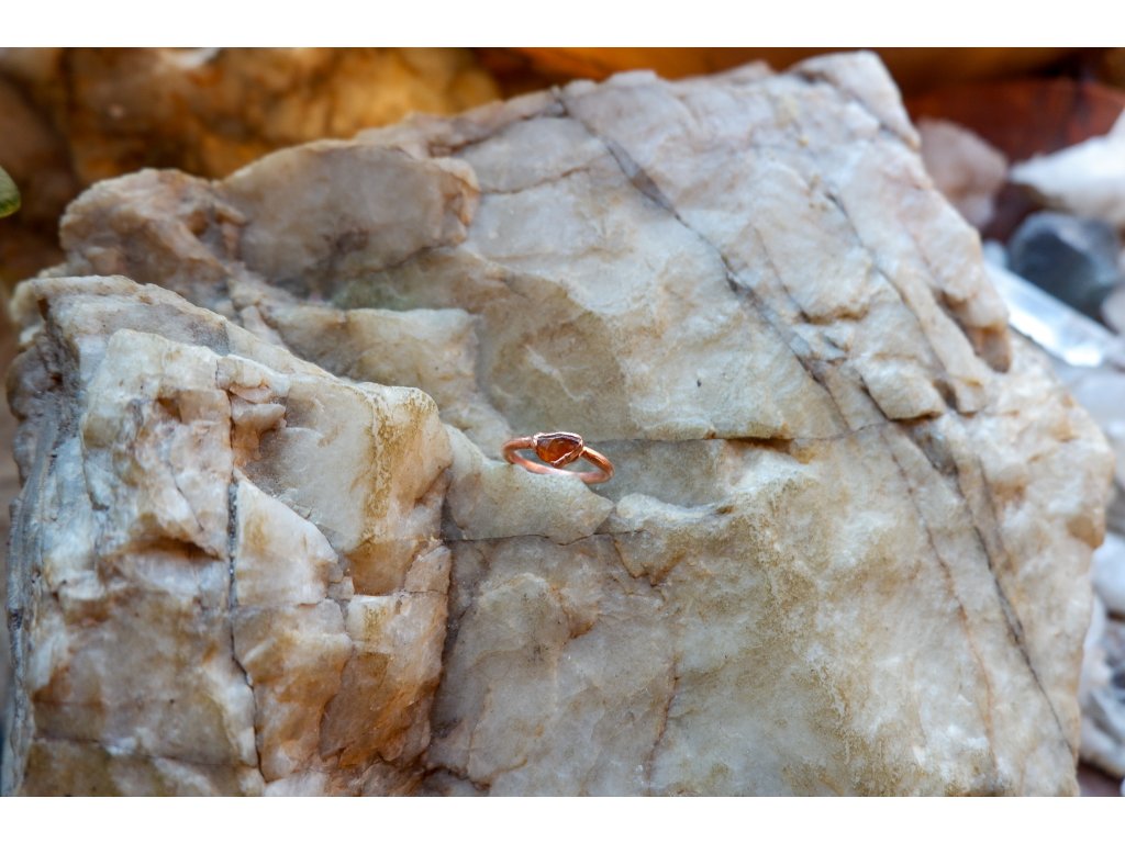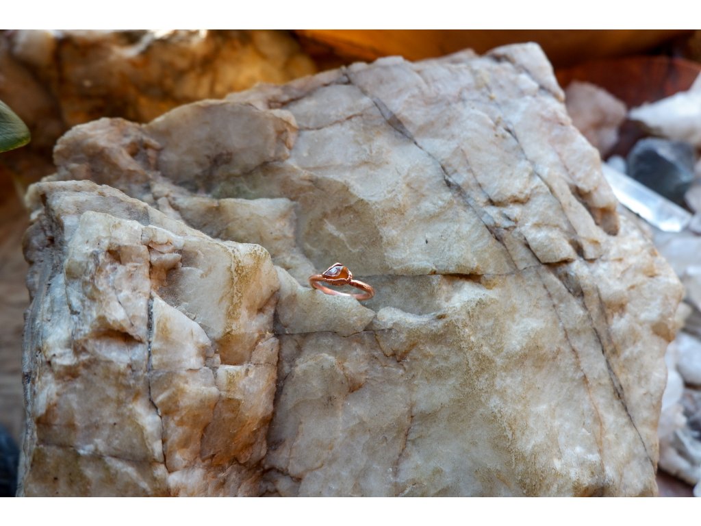 Prsten je vytvořený galvanizační technikou z mědi a karneolu.