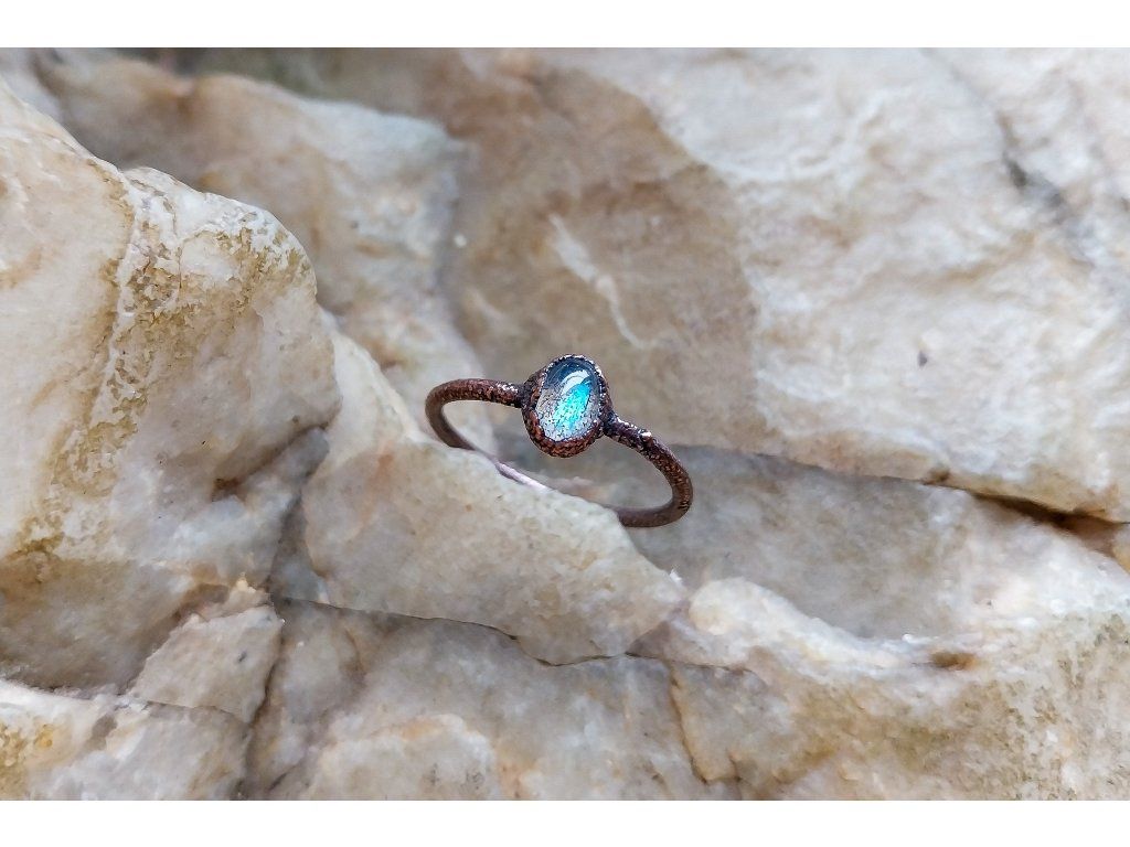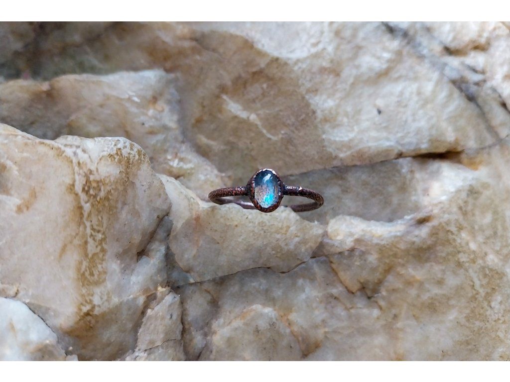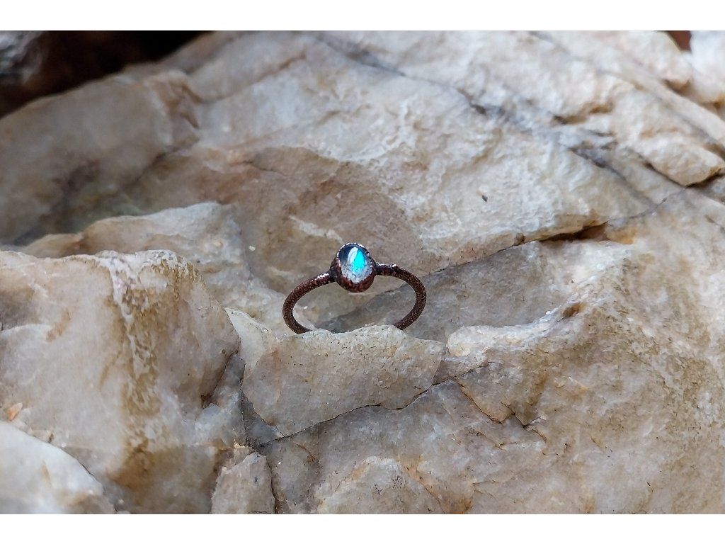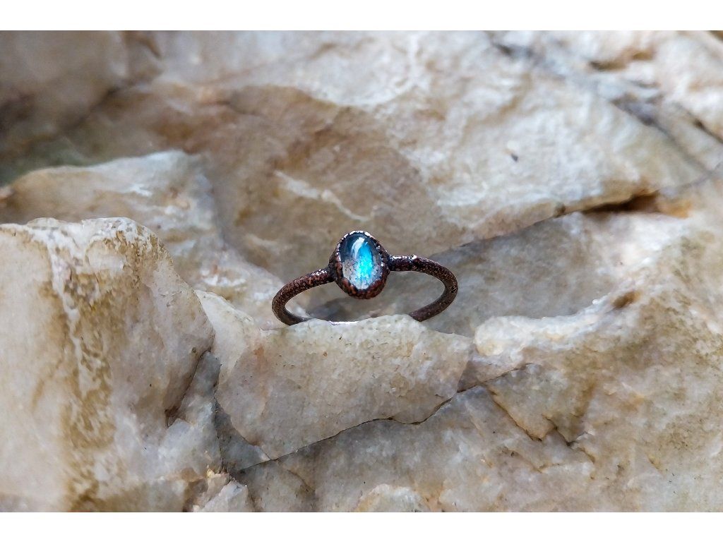 Prsten je vytvořený galvanizační technikou z mědi a labradoritu.