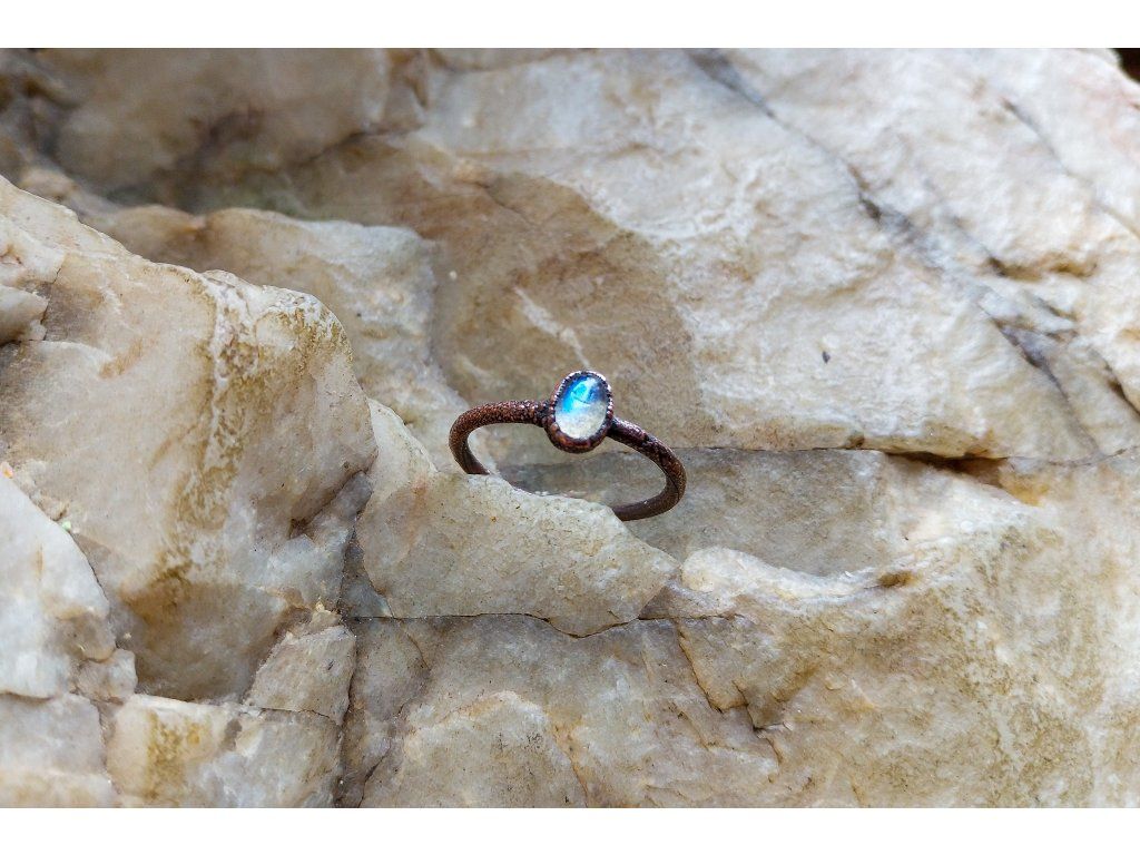 Prsten je vytvořený galvanizační technikou z mědi a labradoritu.