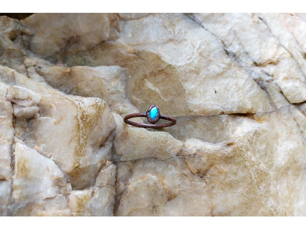 Prsten je vytvořený galvanizační technikou z mědi a labradoritu.