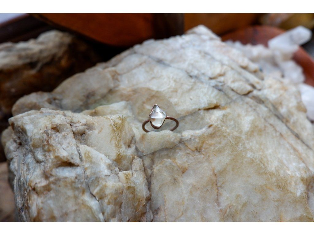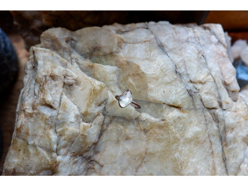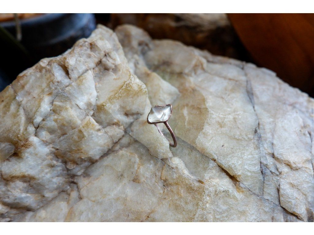 Prsten je vytvořený galvanizační technikou z mědi a slunečního kamenu z Oregonu.