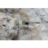 Prsten je vytvořen z peridotu, fialového fluoritu a mědi galvanizační technikou.